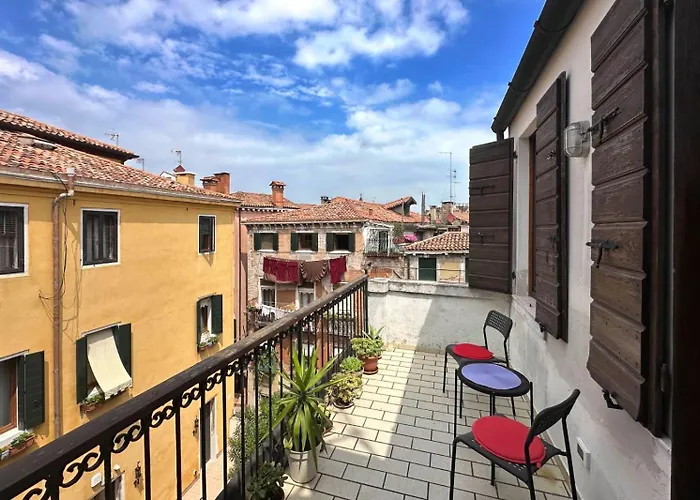 Luminosa Terrazza Dietro S.Marco possui quartos com varanda, sofá e secretária e oferece hospedagem ideal em Veneza. Algumas unidades incluem terraço para relaxar. Todas as casas de banho contêm bidé, banheira e casa de banho à parte.